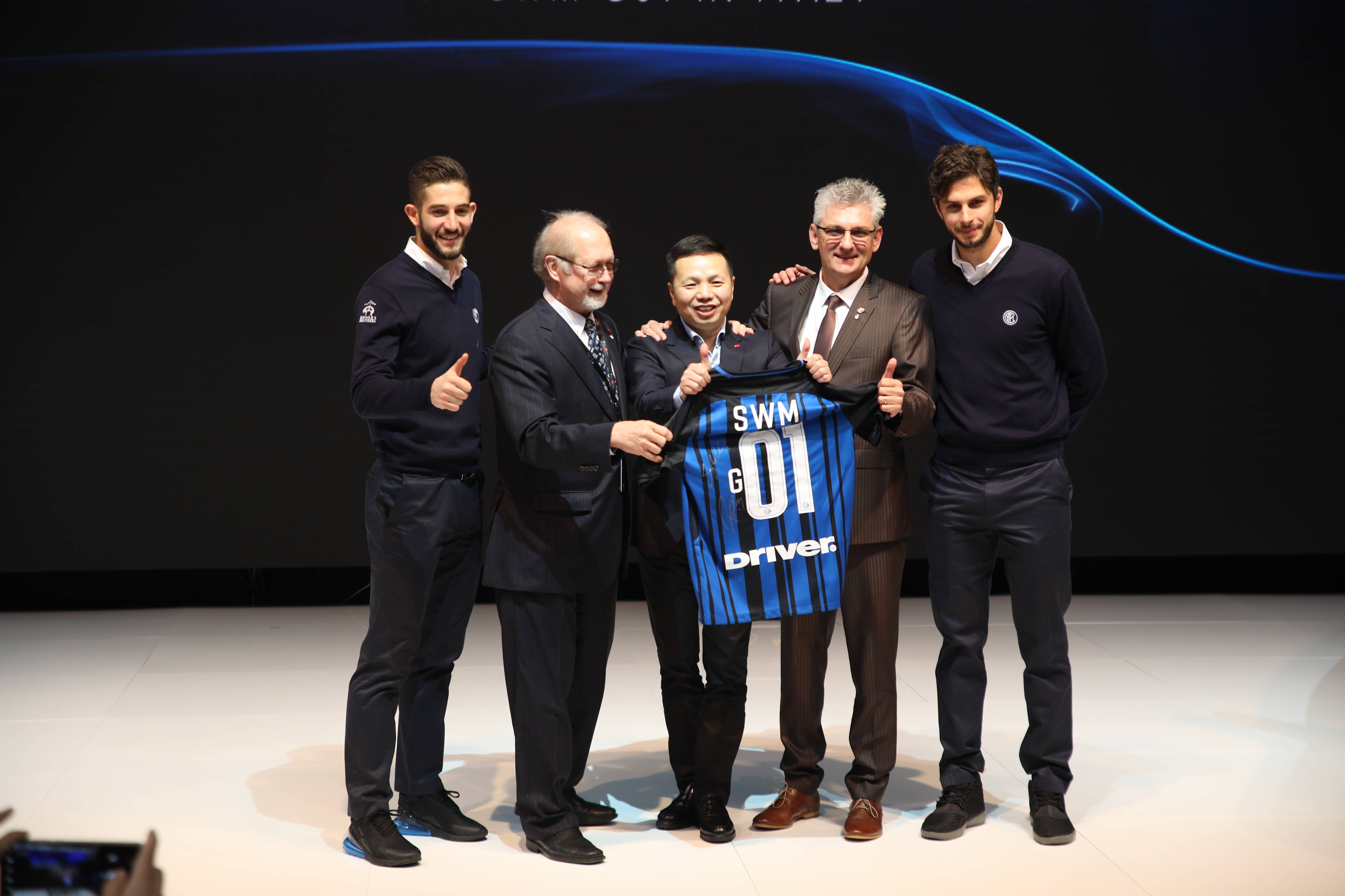 2017年,鑫源旗下SWM品牌牵手国际米兰。那次合作我印象深刻:梅阿查球场的蓝黑灯光一亮,背景屏上出现中文“SWM”,那一刻挺自豪的。