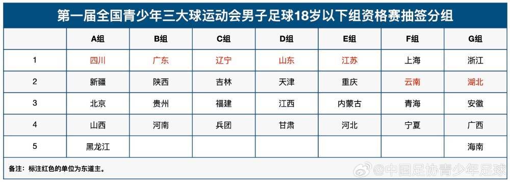 各小组前2名和一个成绩最好的第3名以及东道主湖南U18男子足球队共同获得决赛阶段参赛资格,决赛阶段比赛将于11月底至12月初在湖南省进行。