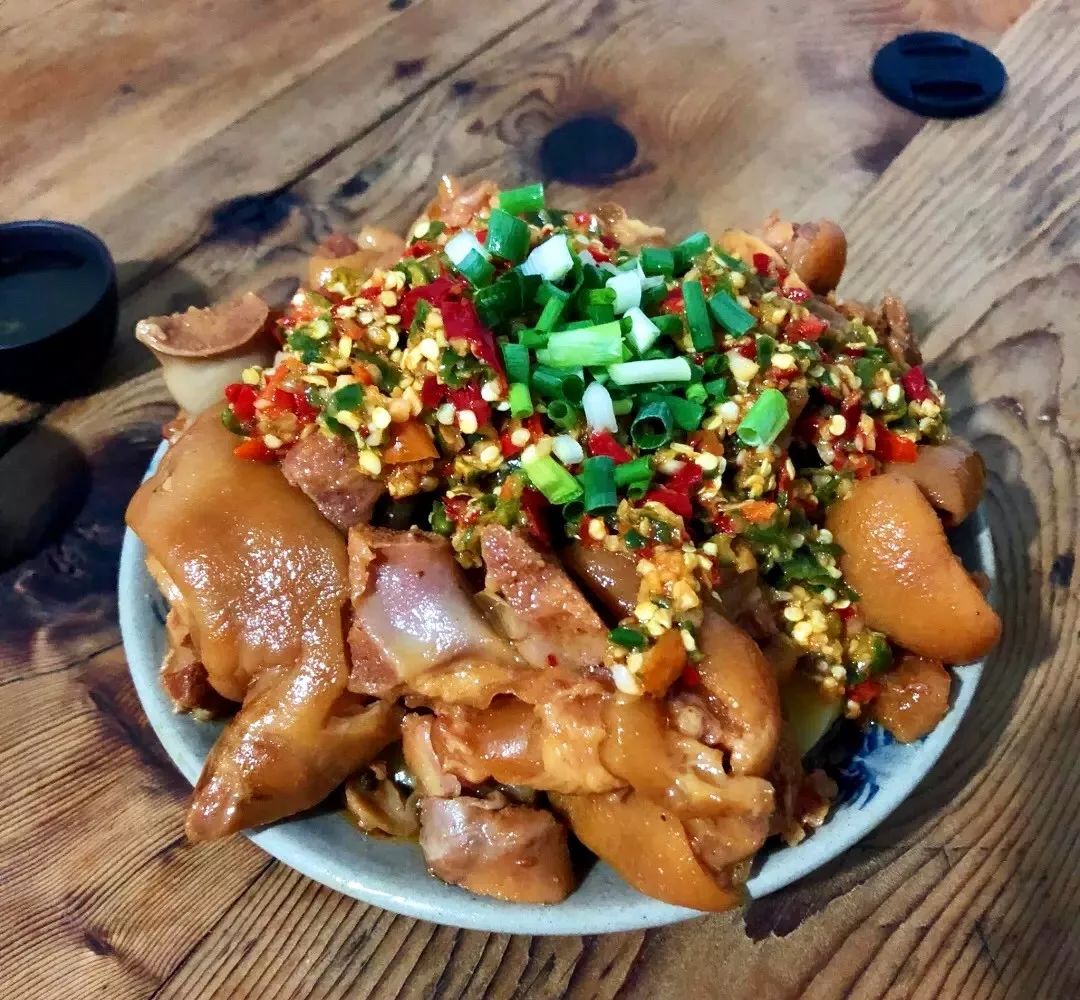 这里的剁椒蹄花烧得很入味,软糯Q弹,最底部铺上了小土豆,然后再淋上特制的辣椒,辣椒的麻辣鲜香全方位的融入进猪蹄,好吃得停不下来。