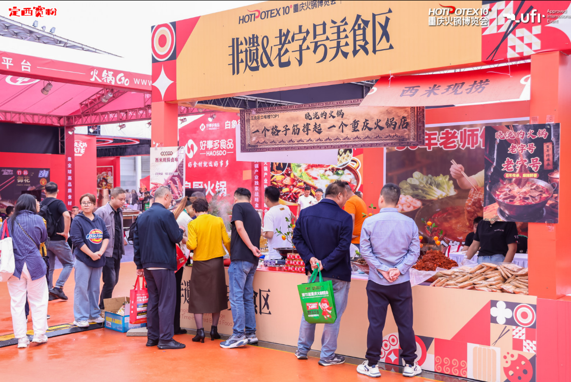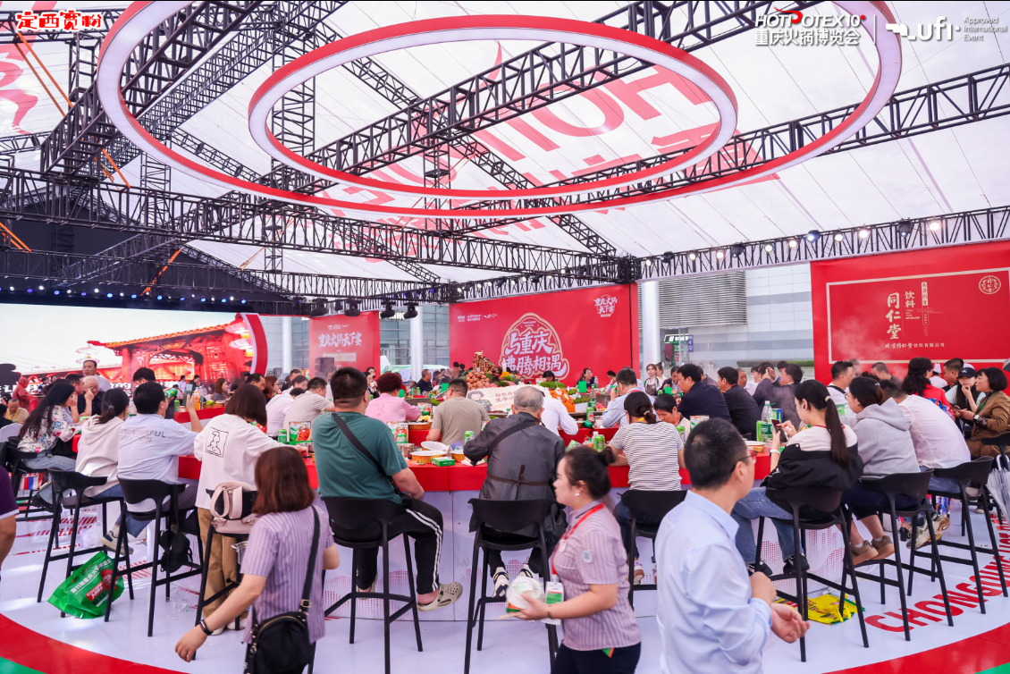 在北室外展区,多家火锅品牌联合呈现了“百桌同开,千人共品”的“火锅天下宴”,在热辣的火锅香气与精彩的表演中,来自全球的嘉宾与观众亲身感受了“中国火锅之都”的热情与魅力。同时还集结了陈麻花、川北凉粉、梁平尹鸭子等非遗&老字号美食,让观众大饱口福。