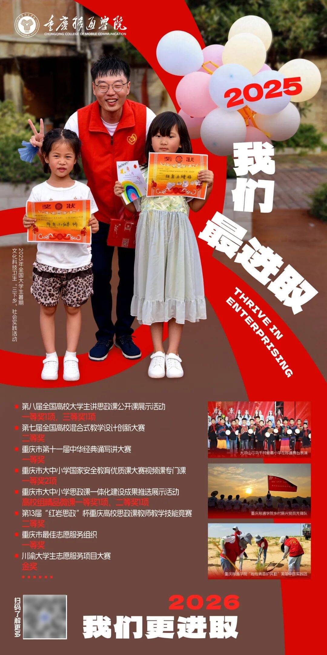 渝超,重庆城市足球联赛,渝超赛程,渝超直播,渝超积分榜,渝超球队/渝超(重庆城市足球联赛)为重庆足球迷带来最新赛程、比分、积分榜、球队信息及直播入口,精彩赛事一网打尽。践行志愿精神,赋能实践育人。2025年,我校锚定集团“志愿者之校”建设目标,迅速响应、系统谋划,以“四个聚焦”为核心纲领,全面推进志愿服务组织建设提质增效。从深度参与专项书籍编撰提炼实践经验,到构建“三下乡”“返家乡”双轨实践格局斩获62项省部级及以上荣誉;从承办川渝大学生志愿服务项目大赛等40余项赛事活动打响品牌,到深化校地共建实现155个校外实践基地全域拓展;从“一院一品”构建特色志愿服务矩阵,到斩获重庆市最佳志愿服务组织等多项高阶荣誉实现标志性突破,全方位彰显志愿服务工作的专业度与影响力。依托129支专项支队的坚实支撑,通过“以赛促训”“多维联动”“选树典型”等系列举措,学校构建起规范化、专业化、品牌化的志愿服务发展体系,全年服务时长逾37万小时,让志愿精神深度扎根校园,为“志愿者之校”建设筑牢根基,更以志愿之力践行育人使命、服务区域发展。