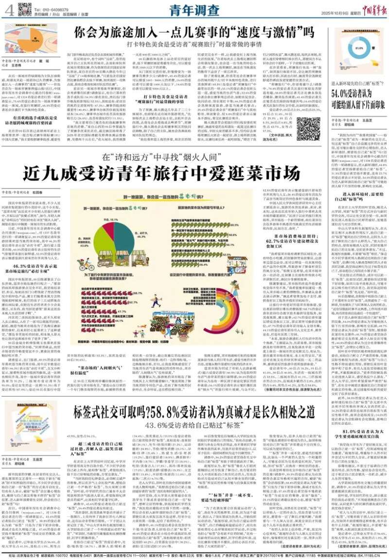 据中国青年报今日4版,日前,中国青年报社社会调查中心联合问卷网(,对1337名青年进行的一项调查显示,出门旅游,89.9%的受访青年喜欢逛当地的菜市场,其中近半数受访青年(46.3%)表示是“必打卡项”。交叉分析显示,随着所在城市级别的提高,这一比例也相应升高,其中一线城市受访青年的获选率为91.2%,二线%。